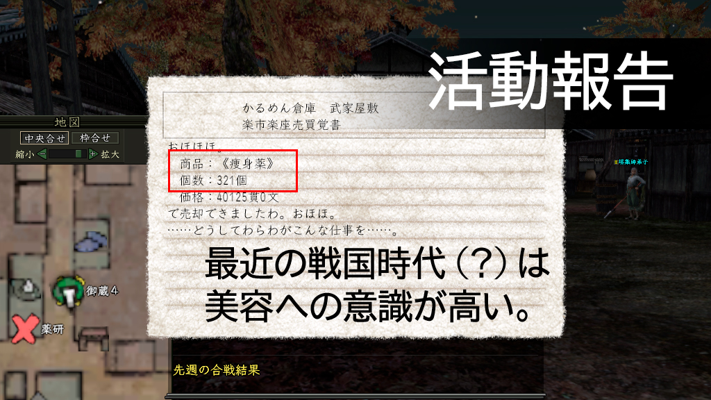 もちろん、プレイヤー用としては最上のものを残せばいいんですけど、下位のものでも「使い捨て用として残しとく?」だけじゃなく、「あれ?これって家臣に使える?」的な選択肢が増えてますので、そのへんがまた悩ましいところです。
