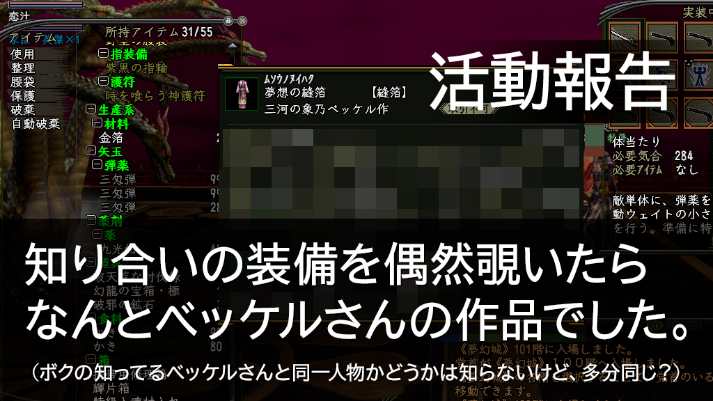 この装備を使用されてる方は比較的ライトユーザの方でございまして、付与等も申し訳程度にしかしておりません。