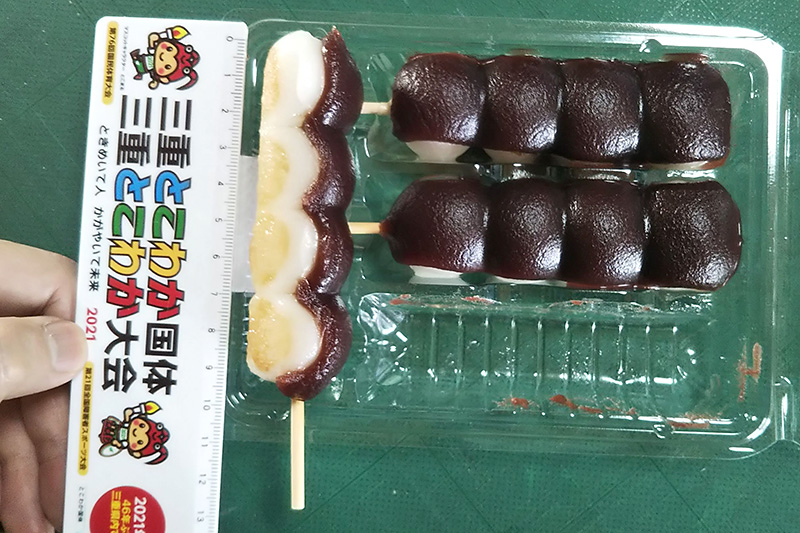 どれくらいのサイズかよくわかりませんので、とりあえず近くのウェルシアでだんごを買ってきました(餡子とみたらししか売ってなかった)。