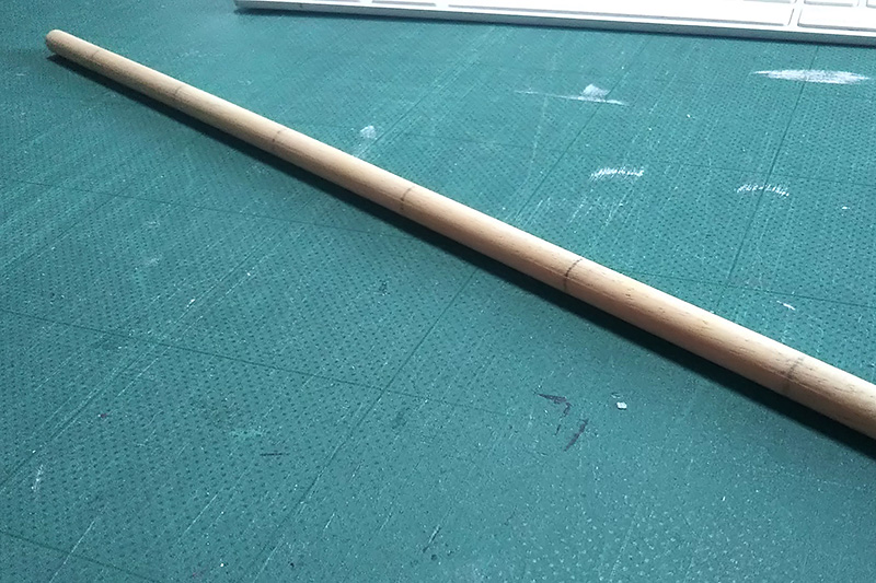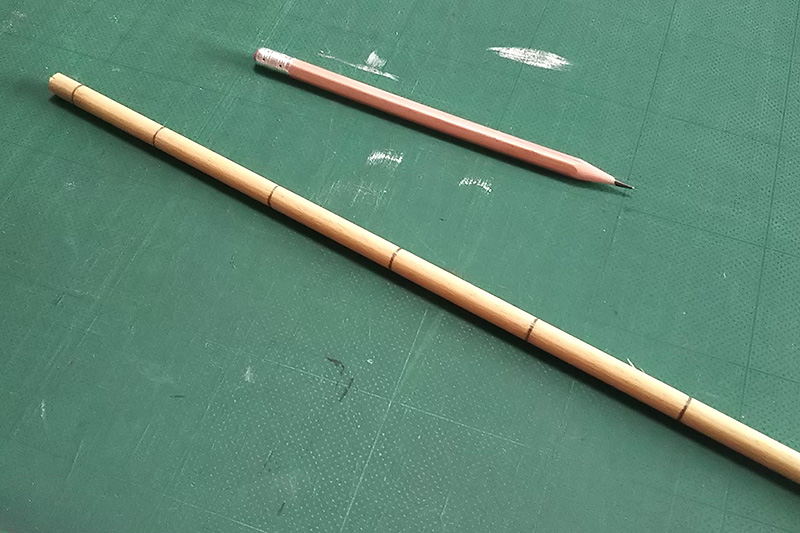 約380mmくらいでカットして、節になる部分に鉛筆で線をいれておきます。