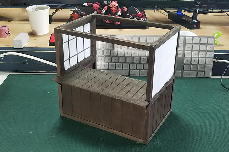 屋台ボディの塗装が終わりましたので、最後に障子紙貼り。せっかくなので本物を使いますか。