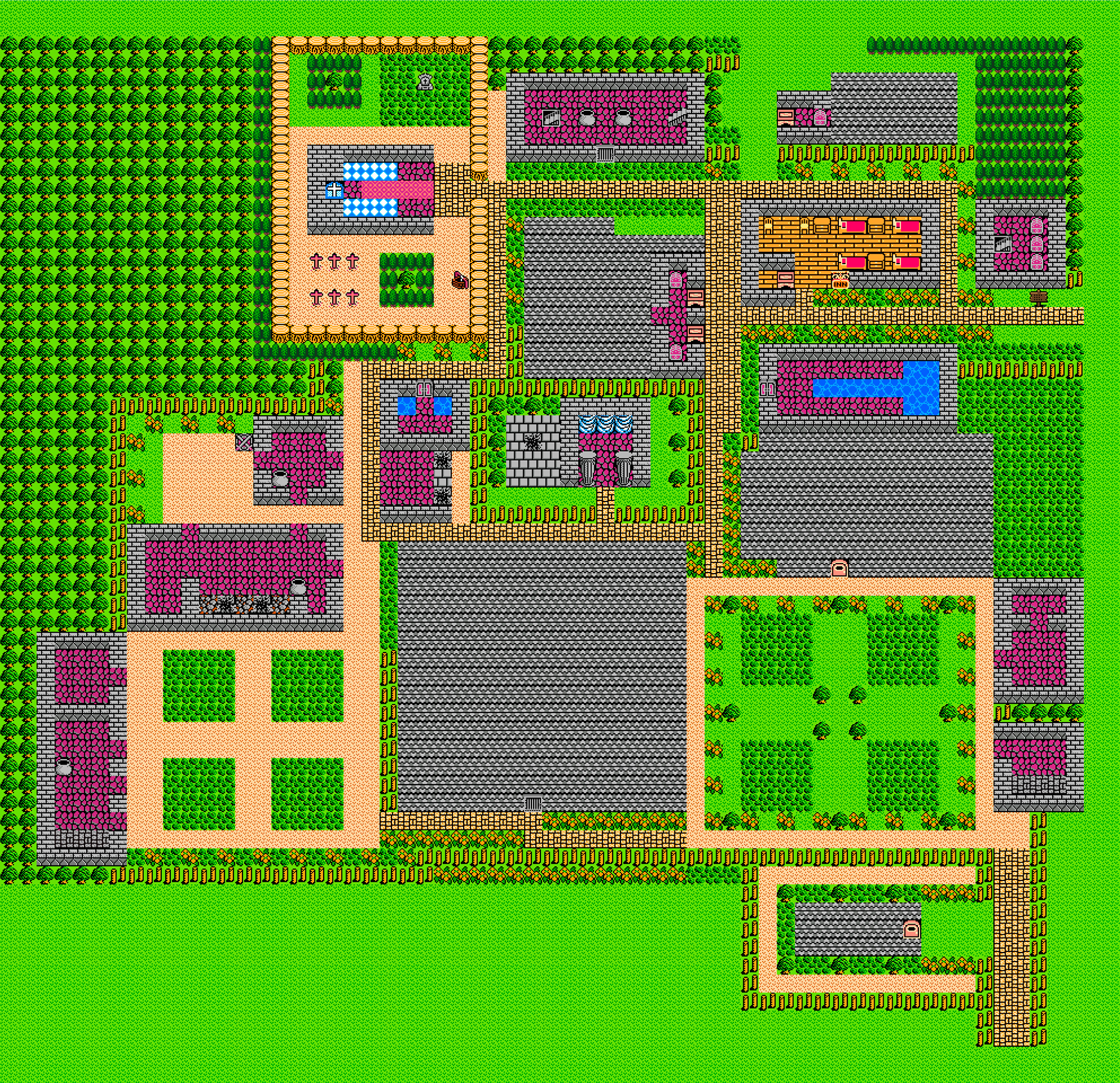 今回は、完全にドラクエ3のアイコンと同じではなく、完全に雑賀郷のマップでもない・・・なんていうか、ドラクエ3を知ってて雑賀郷の町並みを知ってる方が見たら「あー、わかるわ〜」って感じのを目指します。