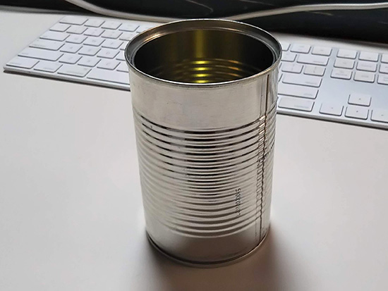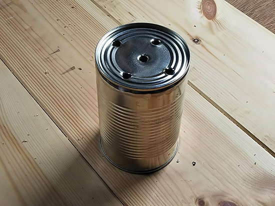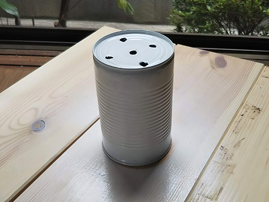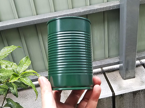 先日空き缶を入手しました。スィートコーンの空き缶です(ようはうちで食べ終わったやつ)。