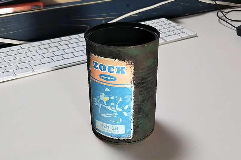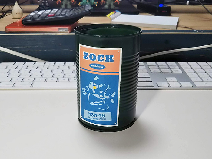 で、この缶を見た途端、突然「ゾックのリメイク缶(いわゆるリメ缶)を作ってみたい」という衝動に駆られまして、ゾックのリメ缶に挑戦してみました。