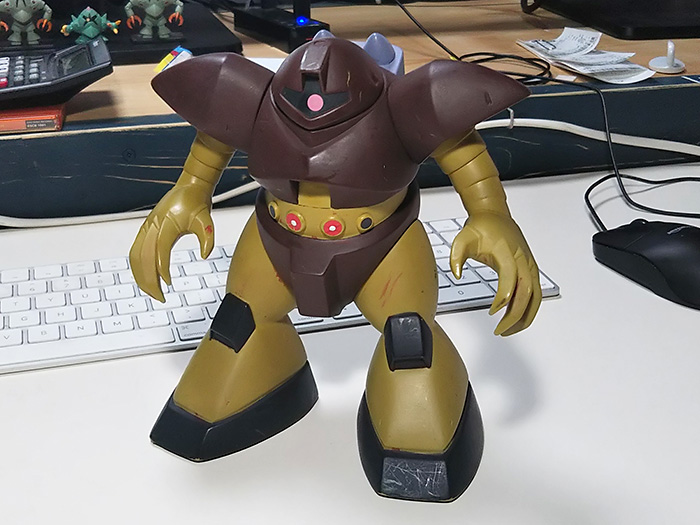 普段は大好きなゾック(水陸両用MSとしては4番人気か)を飾ってるんですけど、一応この場所が〝撮影するときに写る頻度が高い〟ってことで陳列アイテムを替えてみたのです。