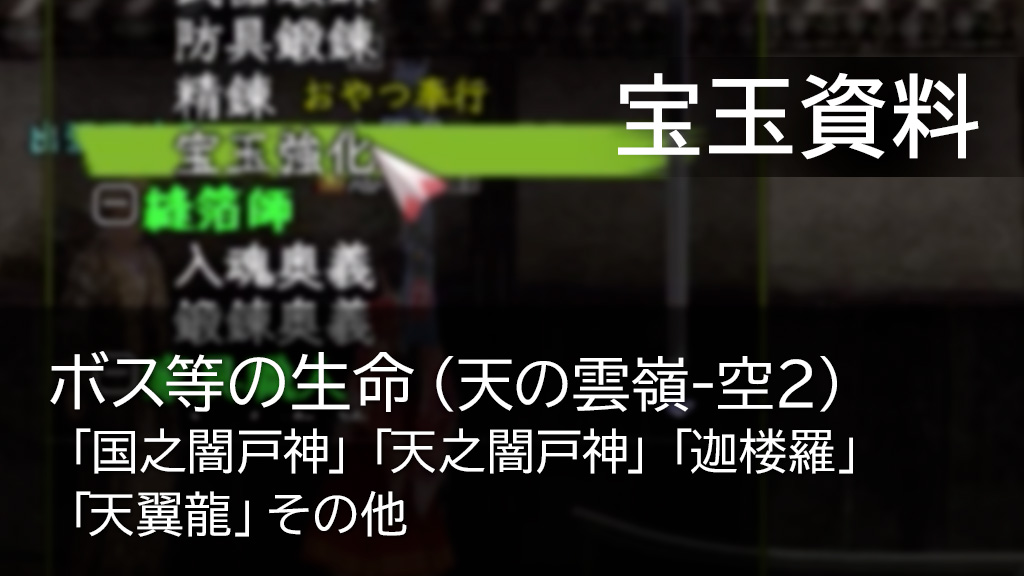 【宝玉資料】天の雲嶺(空2)の主なボス等の生命-200625