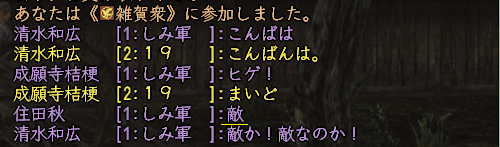 インすると自動的に私設会話に入って、まぁ常々っていうか当然ですが、メンバーと挨拶を交わします。