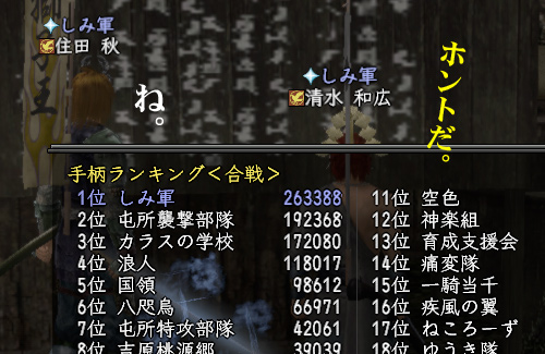 しみ軍合戦1位ってすごいですねぇ。初めてじゃないでしょうか。