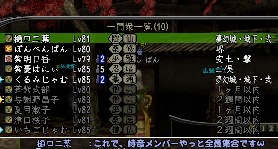 夢幻冥宮から出た瞬間、目の前に何となく見知った名前が見えました。