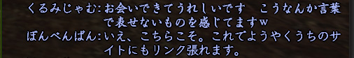 まずは、初めましてのくるみじゃむさんと軽くジャブの応酬。お互いをまだ見極められてない感じの会話です。