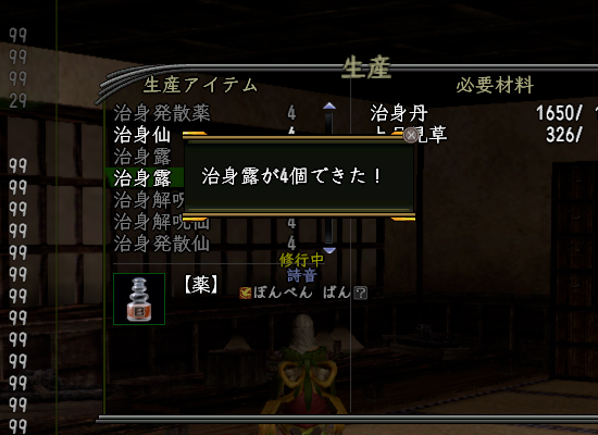 最後にちょっとだけ丹制作。