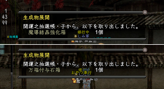 で、メンテ明けといえば開運帳の開封。いつも通りの結果です。