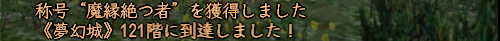 眠気以外、敵らしい敵には見舞われず、一気に120階まで行って称号〝魔縁絶つ者〟をゲット。