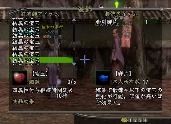 続いて14秒のものを〝妹喜輝晶〟で強化し、成功した宝玉は再度〝金剛輝片〟で5回強化。