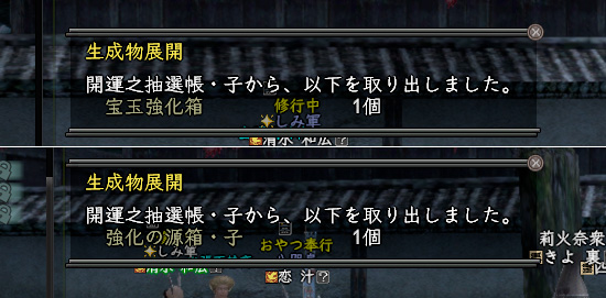 まぁいつも通りなんですけど、今回のキャンペーン中は「討取の証系アイテム開封時に「英傑信頼度」「破邪の鉱石」「封神の鉱石」を入手」(上限あり)ってことでして、中尊寺で手に入る「鎌倉の箱」とかもその対象。