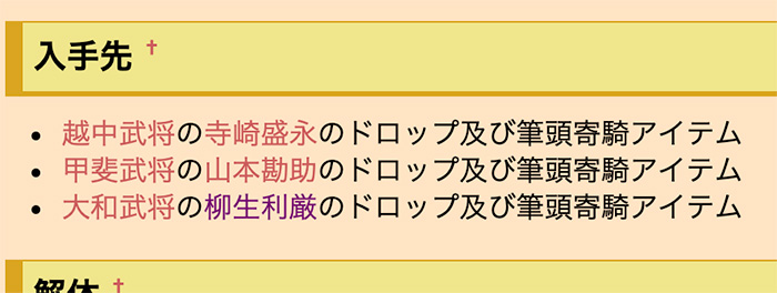 | 武将名 | 筆頭寄騎アイテム |