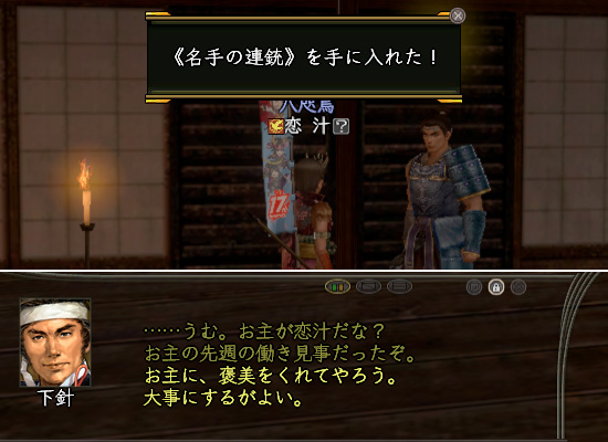 というわけで、筆頭寄騎に掲示されると大名もしくは部隊長(合戦中は城代)からご褒美がもらえます。それが筆頭寄騎アイテムです。