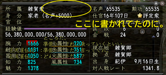 まずこちら。2006年1月20日、家老になった日(翌メンテ)の個人情報。
