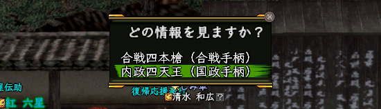 | 内政 | 20以上 | 巡察とか | 5 |