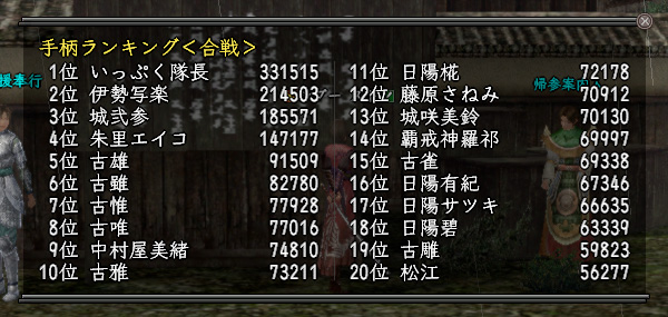 一応手柄ランキングも確認してみると、まぁさすがに誰も狙ってない(と思う)だけあって無難な順位でしょうか。