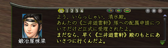 身分が「与力」以上になると、寄合所の長に部隊配属の申請ができます。