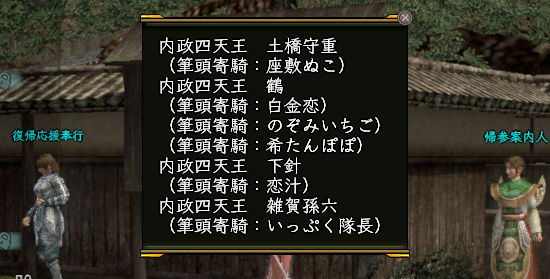 - 所属するPCの活動によって多大な手柄を立てた場合、武将または主君から表彰されることがあります。