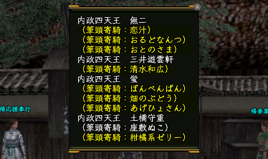 同じ武将NPC配下のPC同士を「部隊」と呼びます。