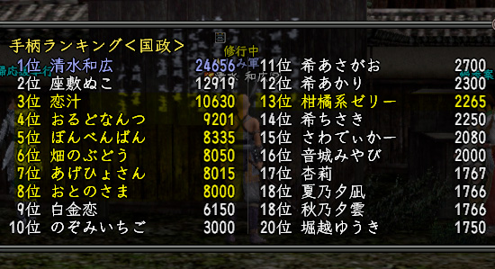 そんなこんなで、各キャラの国政手柄、準備完了。