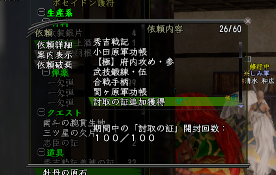 確か〝討取の証〟の獲得個数は明日のメンテでリセットされるハズなので・・・また集めないとダメですな。