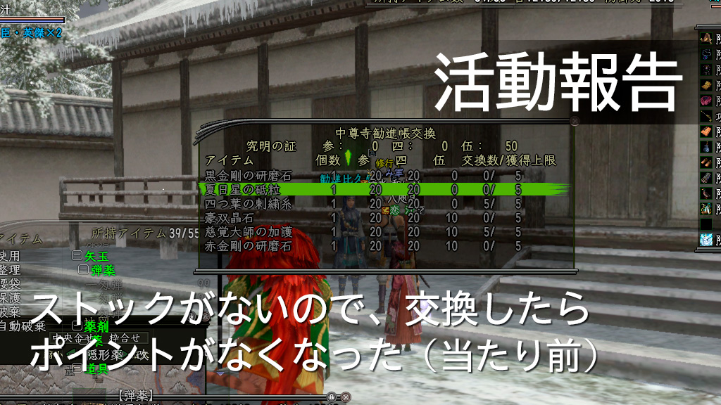 明日はまた〝討取の証〟集めからスタートか。どうにか段取りよく終わらせる方法はないですかねぇ。