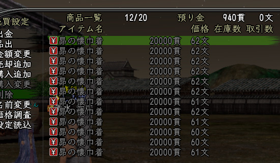これからは、現状市に並べてるものがほぼ売れないだろうから(たいしたことない材料ばかりなので)、何かテコ入れする必要がございます。