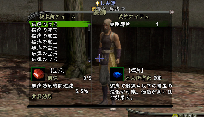 多少減ったところで今日は終了。もう少し減らしとかないとすぐ一杯になりそうだな(〝破痺の宝玉〟は中尊寺で取れるから)。