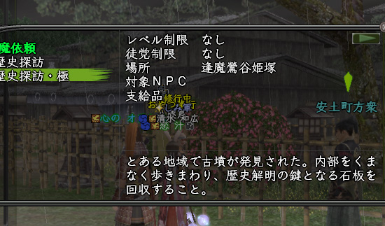 安土へ到着し、早速依頼確認。ほ〜〝歴史探訪〟ですか。