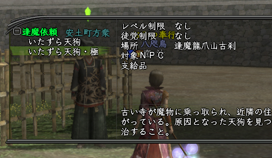 まずは、日課になりつつある新TD確認。今日は〝いたずら天狗・極〟かぁ。週初めに断念したクエですな。