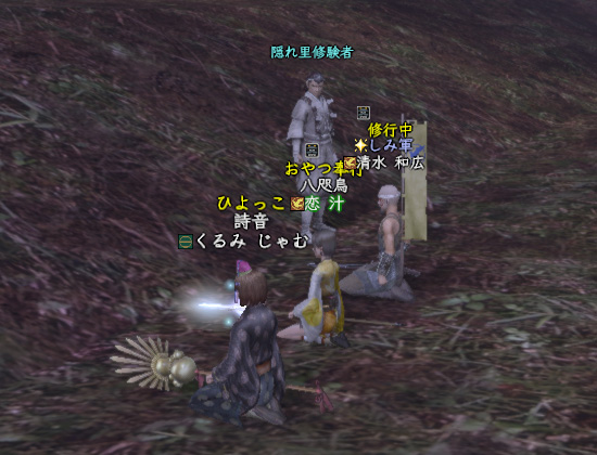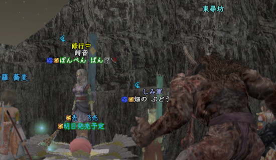 いんこりさんが〝神域の龍〟だったかな?4人以上でクリアする〝もののふ道場〟のクエを受けてました。
