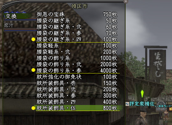 • 〝腰袋の継ぎ糸・四〟×1500=領国銀15万(多分)