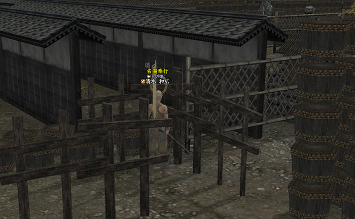 そこに上がればいいのか?と。上がり損ねて樽と手水屋の間にはまって