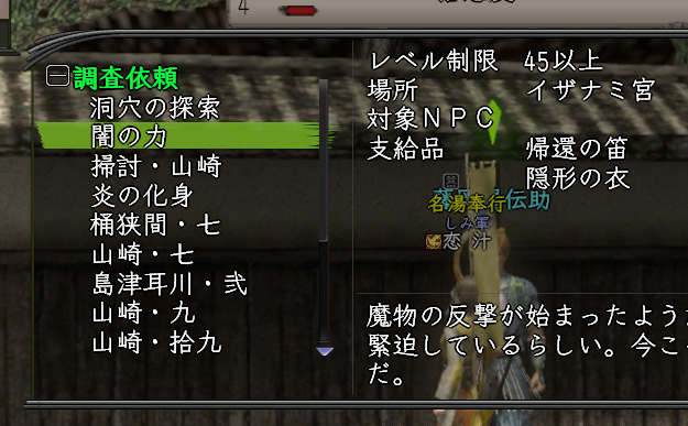 これは〝イザナミ宮〟で雑魚を倒す依頼ですが、つまりこの依頼があればイザワープができるわけでして、イザから〝根の国〟に戻ることで〝火雷〟と即戦闘が可能になります。