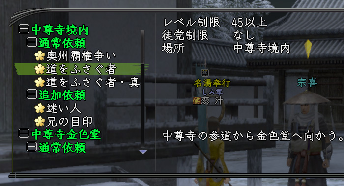 ってことで〝中尊寺〟で〝道をふさぐ者〟を中心に、適当に貢献度がもらえる敵を倒します。