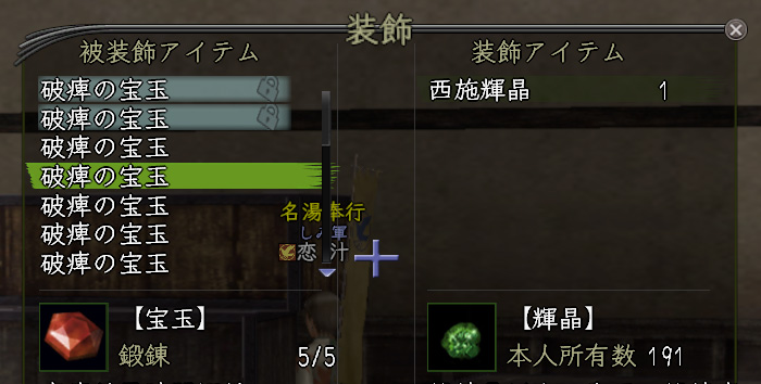 最後に鉄の荷物整理をして終了(汁の荷物整理は間に合わず)。理由はよくわかんないけど、属性の〝鬼神石〟がでなくて困ってるナウ。