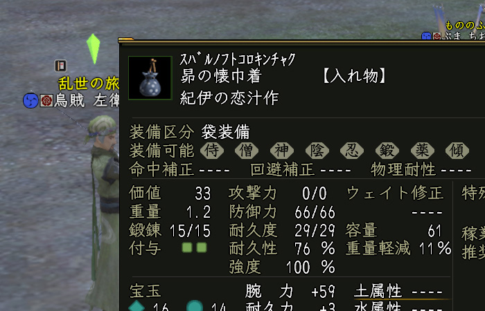 たまたま汁の近くに居た人の装備を覗いたら、汁が「作業用」として売ってた袋装備を使ってくれてたとか、