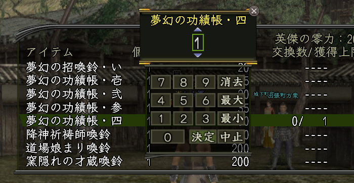 まずは忘れないうちに〝英傑の零力〟で〝夢幻の功績帳・四〟を交換
