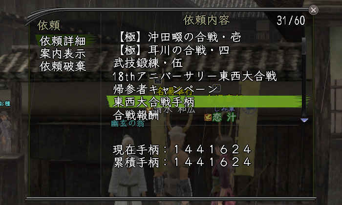 アイテム数にすると16個程度。2垢で鉄汁2キャラしかやってない清水でこれくらいなんですから、複数キャラを育ててる方はさらに多くの時間をかけないと報酬もらえないんですよねぇ。
