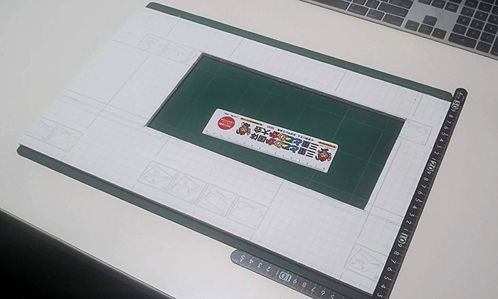 書庫を探すとダイソーのスチレンボード(?よく知らん)を発見したので、試しにこれを壁面にしてみます。