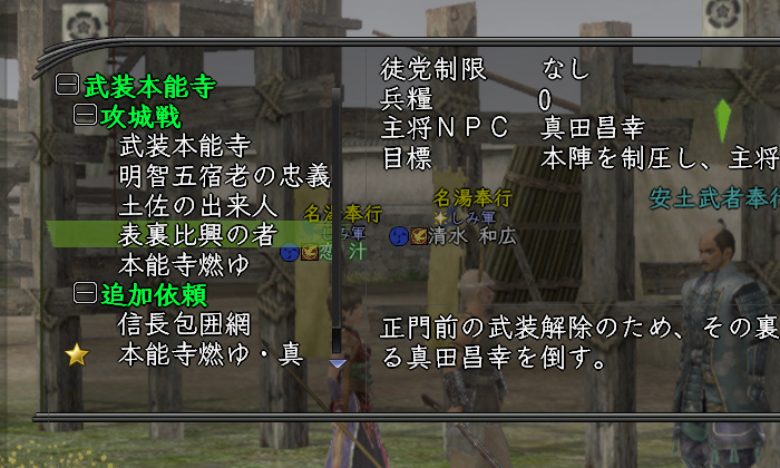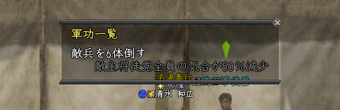 最近は舐めぷーですっかり忘れておりましたが、この軍功をこなすことでボス戦において何かしらの恩恵を受けることができます。昌幸戦の場合は「敵主将徒党全員の気合が50%減少(でスタート)」とのこと。