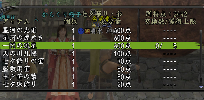 七夕ポイント交換は、希望していたものの8割くらいは交換済。〝鬼神石〟関係はあきらめて、せめて最後の九十九関係だけでも入手したいところです。