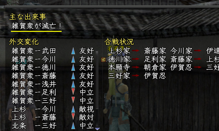メンテ明けの主なトピックスは雑賀衆の滅亡でした。