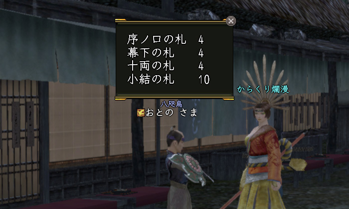 彼は10階を達成後、7階にいる隠れ里名主にきちんと報告に行ったため〝小結の札〟が少し多めです。