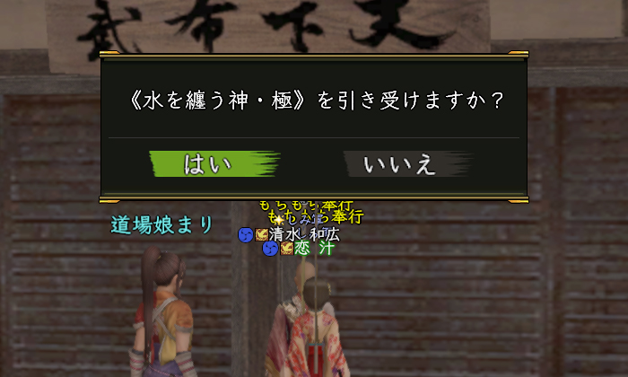 昨夜、ログインしたら、昼間ログアウトした勝頼さんのところで
