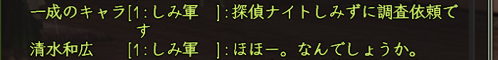 インすると一成さんが起きてまして、早速「探偵ナイト清水」に依頼が舞い込みました。